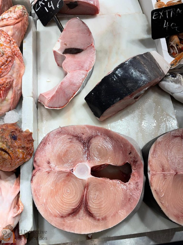 CORTE DE PEZ ESPADA-AGUJA PALÁ1-EMPERADOR. CORTE DE MARRAJO.TIBURÓN GRANDE Y PELIGROSO. FLECHA VERDE: Nos llama la atención sobre el MUSCULO