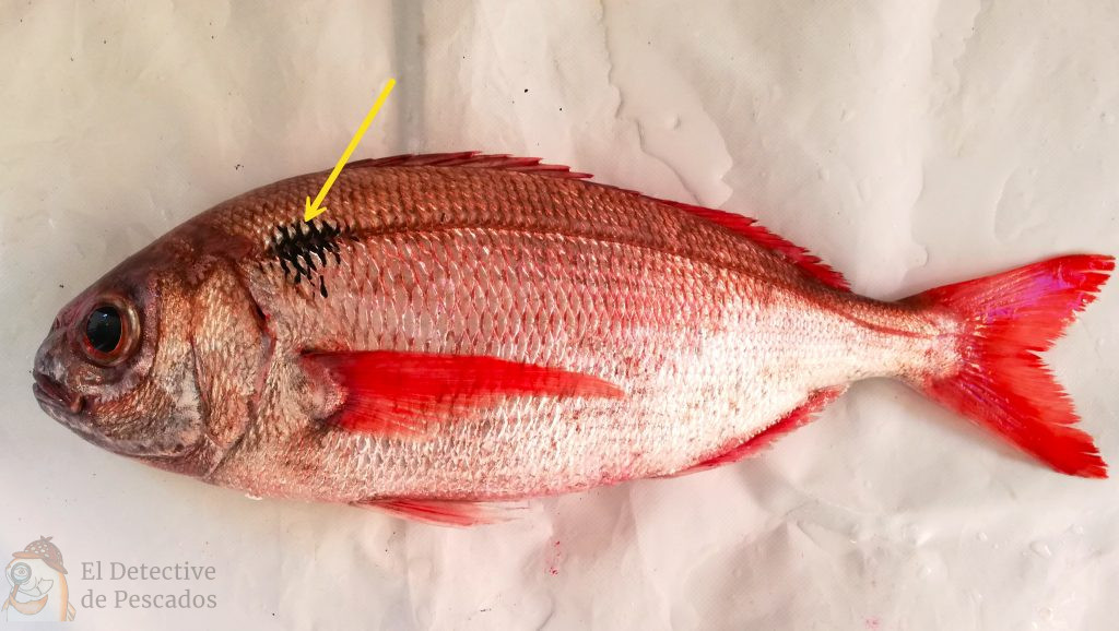 - La foto de este animal está en una situación de excepcional frescura( en este blog, buscamos lo mejor para nuestros «clientes») por eso su seña de identidad, la mancha negra al inicio de la LINEA LATERAL, es bien visible. Con el paso del tiempo pierde intensidad y llega a ser imperceptible. ↩︎