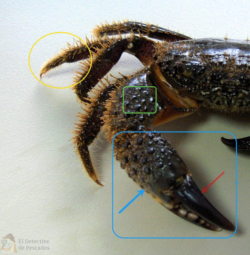 Ahora nos centramos en los elementos más llamativos de la fisonomía de este crustáceo, los que nos hará distinguirlo del resto de cangrejos. Ese es el principal objetivo de EL DETECTIVE DE PESCADOS.