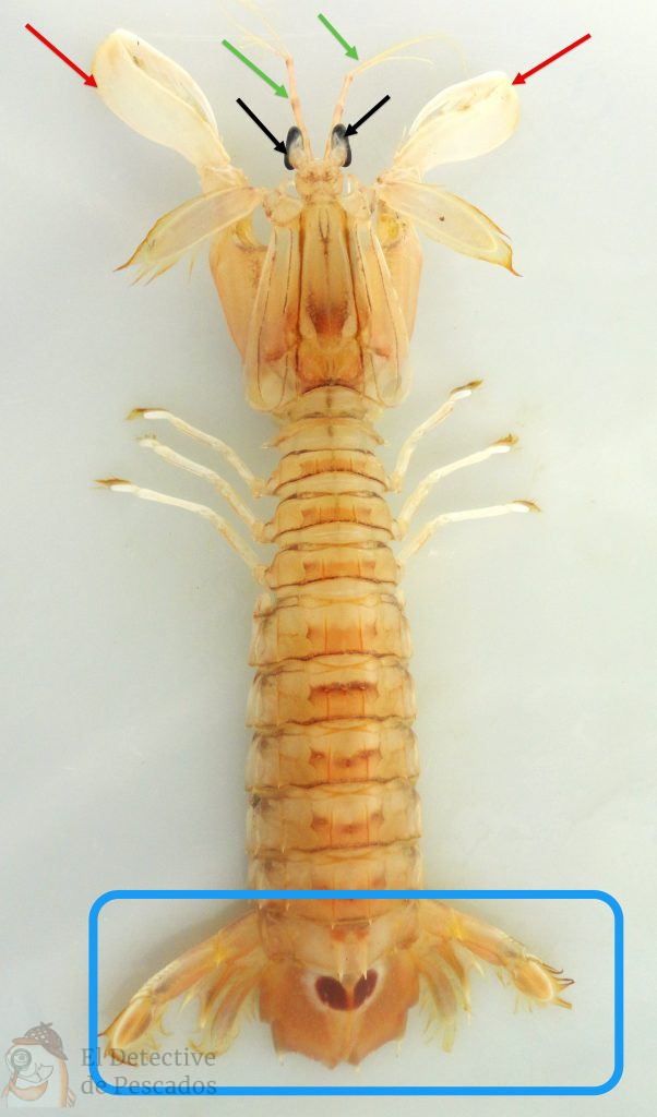 Les contaba al principio de esta ficha que con la GALERA OCELADA abordamos el estudio del primer CRUSTÁCEO en este blog.La anatomía y los nombre que reciben cada parte del cuerpo de estos animales es complejo( Son muchas estructuras, pequeñas o pequeñísimas, y con nombres en muchos casos difíciles de escribir y pronunciar). En EL DETECTIVE DE PESCADOS no vamos a renunciar a ir aprendiendo sobre anatomía y otras «cosas» de pescados y mariscos, pero poco a poco, y sin agotar sensorialmente a nuestros visitantes.