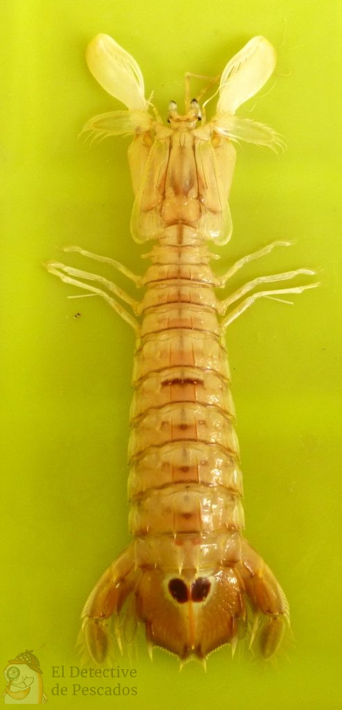 Debajo de la foto les pongo el primer par de denominaciones que debemos conocer.Por un lado su nombre oficial en ESPAÑOL, GALERA OCELADA y después la científica, Squilla mantis.1