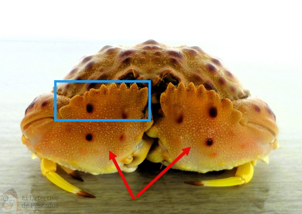 - Con respecto a las pompas que se visualizan entre los ojos, simplemente nos confirman que el animal está vivo, detalle este que resulta muy importante a la hora de adquirir cangrejos y similares (centollos, bogavantes, langostas, nécoras, cangrejos de rio, cangrejo azul). Se deben rechazar los muertos o aquellos con muy escasa vitalidad. ↩︎